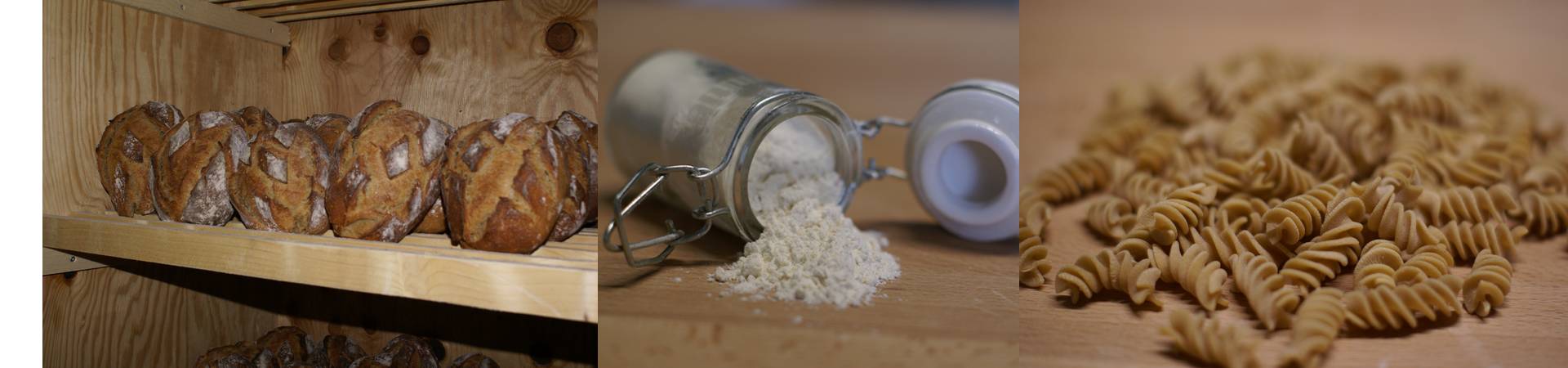 Découvrez nos produits issus de notre ferme : du grain au pain et pâtes.